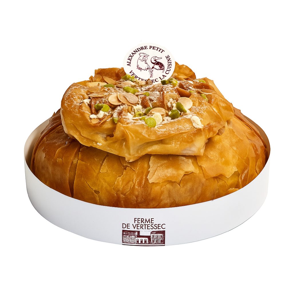 Pastilla festive boudin noir, châtaignes, compotée d’oignons et raisins, touche de cannelle et amandes torréfiées 38.00 € / pièce VOir le produit